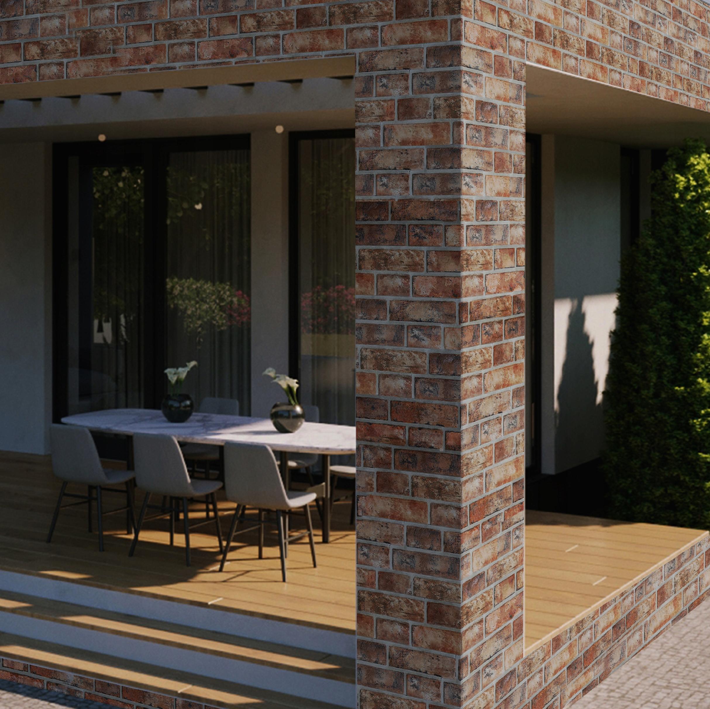 - Estetyka i styl: Avella Red łączy w sobie naturalny charakter i nowoczesną estetykę, co sprawia, że doskonale komponuje się z różnorodnymi wzorami architektonicznymi.