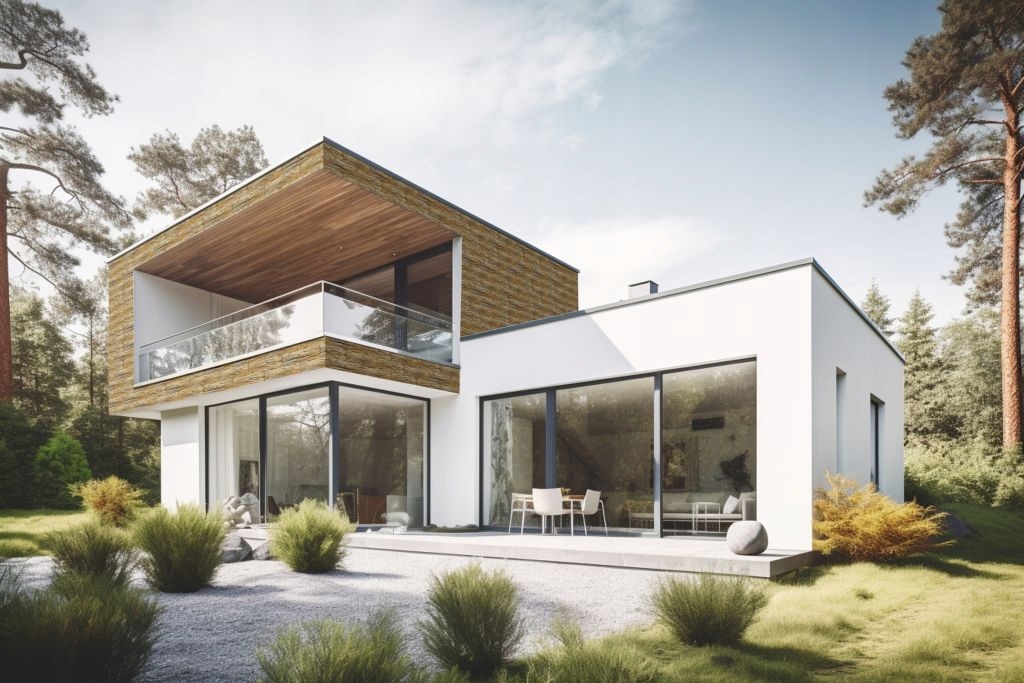 - elewacje domów jednorodzinnych i budynków komercyjnych,