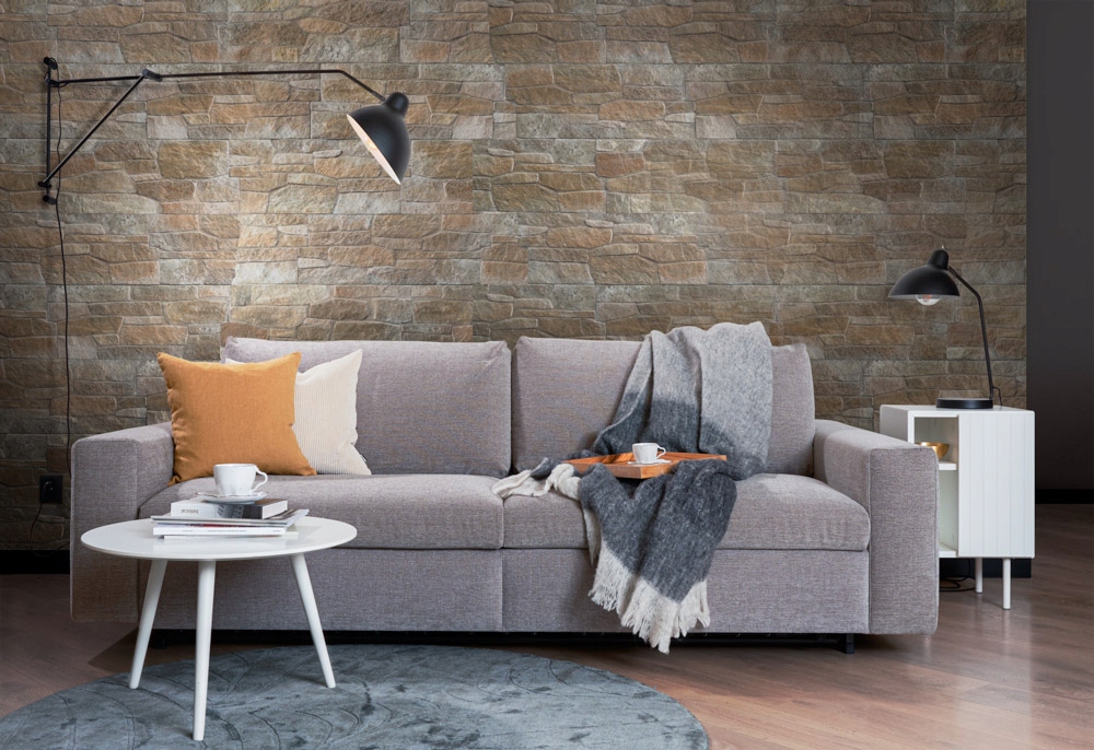 Castello Sabbia to produkt, który w Natural Stone Effect łączy wizualne właściwości prawdziwego kamienia z nowoczesnymi technologiami. Powstały w ten sposób kamień betonowy nie odbiega od naturalnego kamienia, a jednocześnie oferuje wyższe walory funkcjonalne. Dostępny w naturalnych odcieniach brązu, doskonale wkomponowuje się w różnorodne style dekoracyjne, tworząc harmonijne przestrzenie.