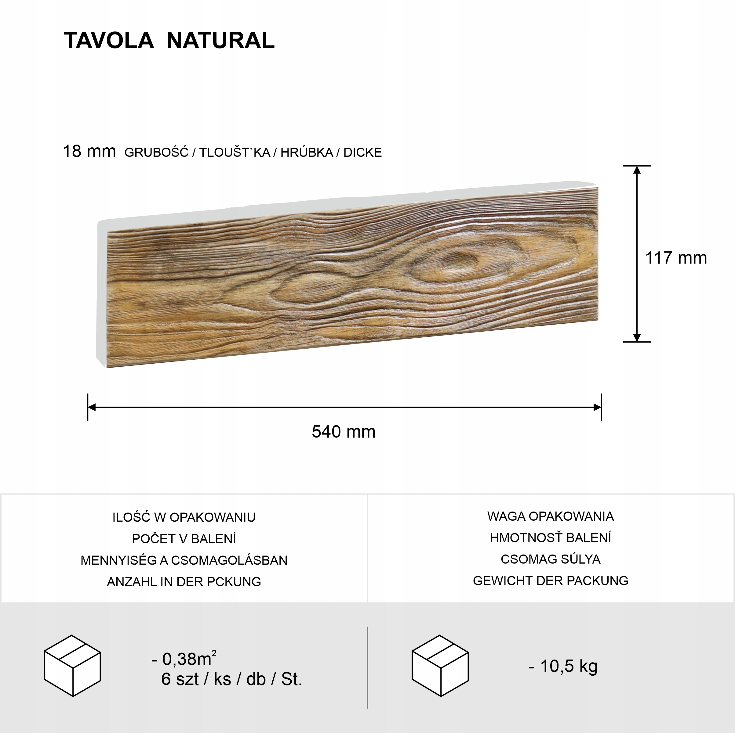 Wykonany z betonu, kamień Tavola Natural łączy w sobie nowoczesny design i właściwości naturalnych materiałów. Jego powierzchnia imituje prawdziwe drewno, co nadaje ścianom ciepły, organiczny charakter, bez potrzeby okresowej konserwacji. Odcienie jasnego dębu i miodowego brązu sprawią, że idealnie wpisze się w styl skandynawski, rustykalny, japandi czy boho.