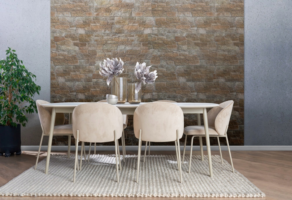 Kamień elewacyjny dekoracyjny Castello Sabbia to wyjątkowy produkt, który łączy w sobie dawną elegancję naturalnego kamienia z nowoczesnymi technologiami produkcji. Jego unikalny, geometryczny kształt oraz stonowana brązowa kolorystyka pozwalają na harmonijne wkomponowanie go zarówno w architekturę nowoczesnych budynków, jak i tradycyjnych wnętrz.