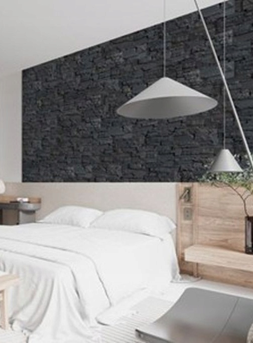 - Minimalistyczna estetyka: inspirowany naturalnym łupkiem, kamień w stonowanej palecie szaro-grafitowych odcieni sprzyja eleganckiej i spójnej aranżacji każdej przestrzeni.