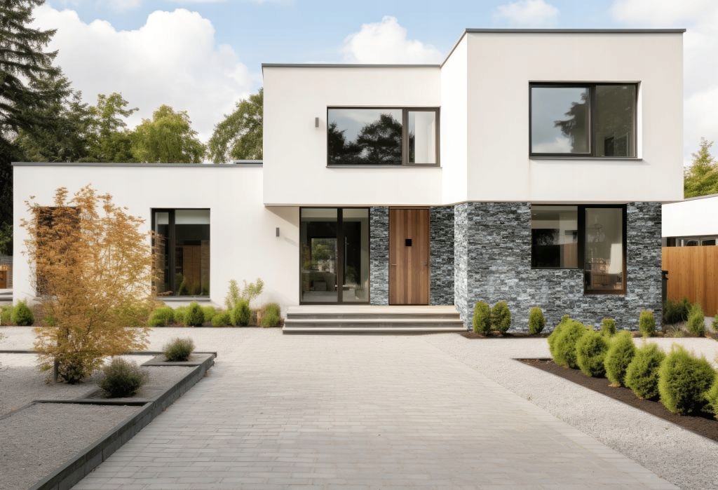 - Elewacjach domów jednorodzinnych i budynków komercyjnych.