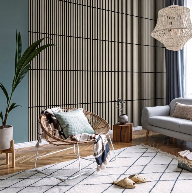 - Stylowe wzornictwo: Połączenie naturalnego wyglądu drewna z minimalistyczną formą sprawia, że lamele doskonale komponują się z różnorodnymi stylami wnętrz, od nowoczesnych po skandynawskie i loftowe.