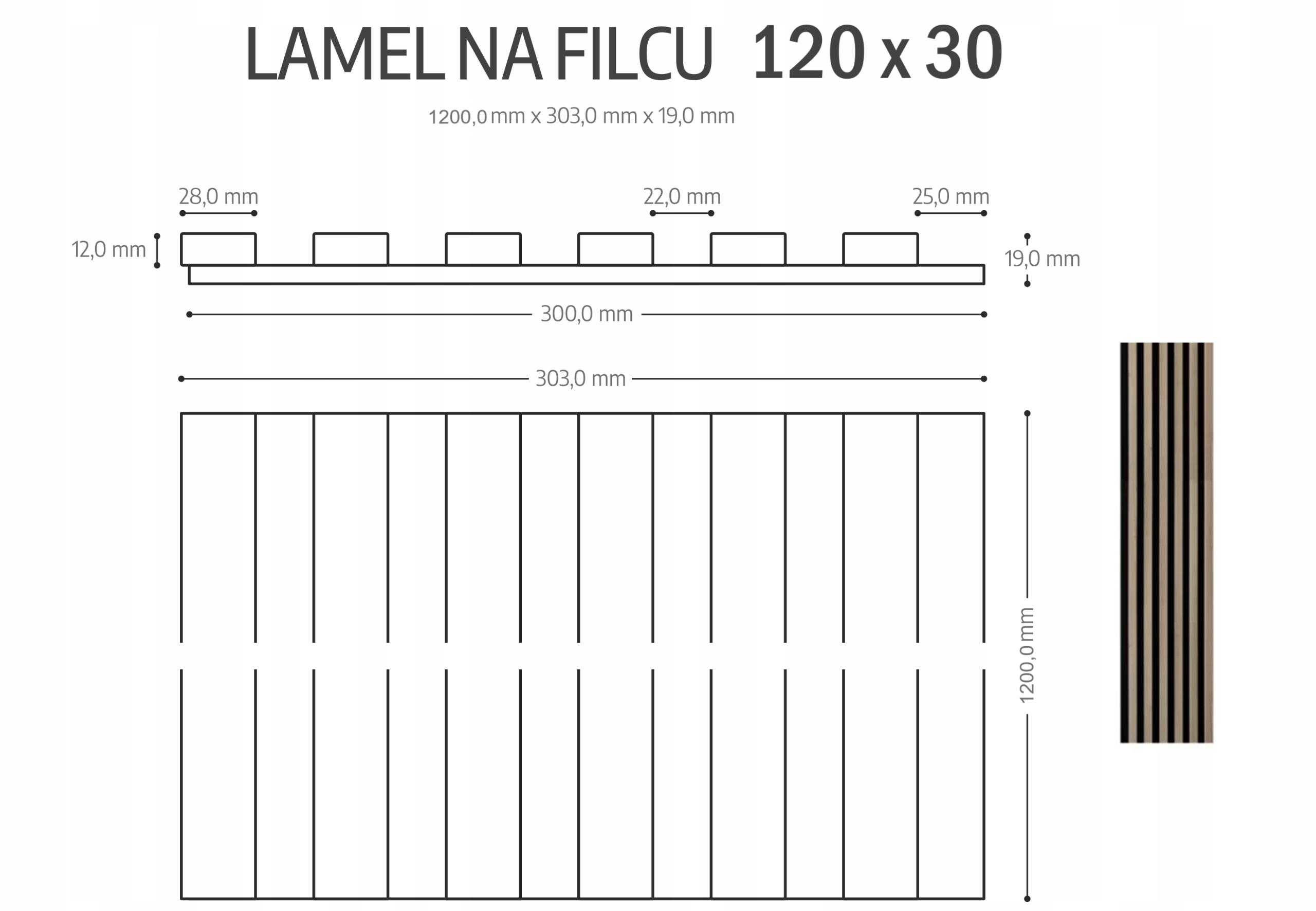 Lamele na filcu 120×30 Ścienne Panele Akustyczne Dąb Naturalny Riva 6L