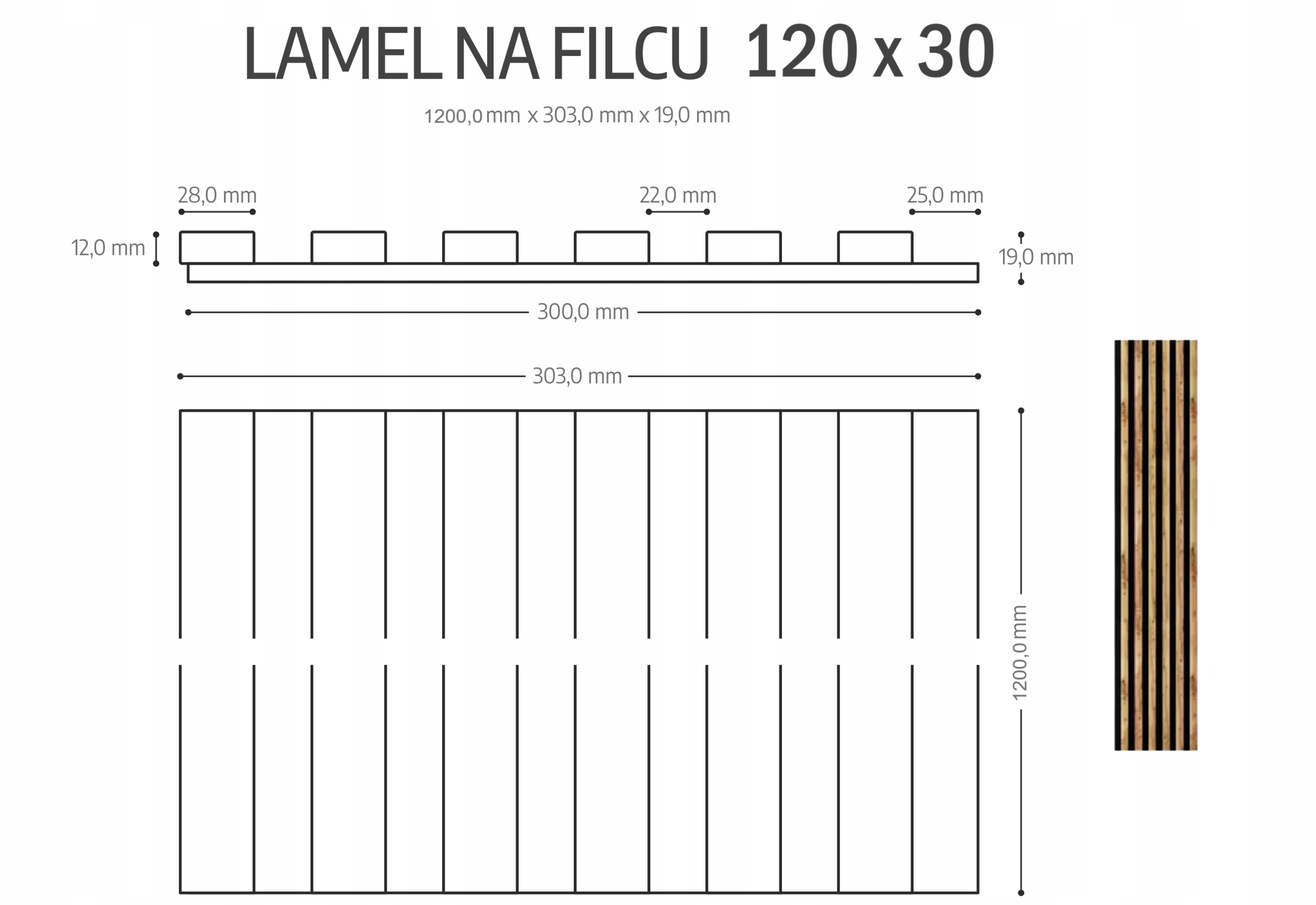 Każdy panel ma wymiary 120 × 30,3 × 1,9 cm, a jego materiał – płyta MDF o wysokiej gęstości oraz filc – zapewniają nie tylko estetykę, ale również odporność na odkształcenia. Dzięki swojej lekkiej budowie, lamele są łatwe w transporcie i montażu.