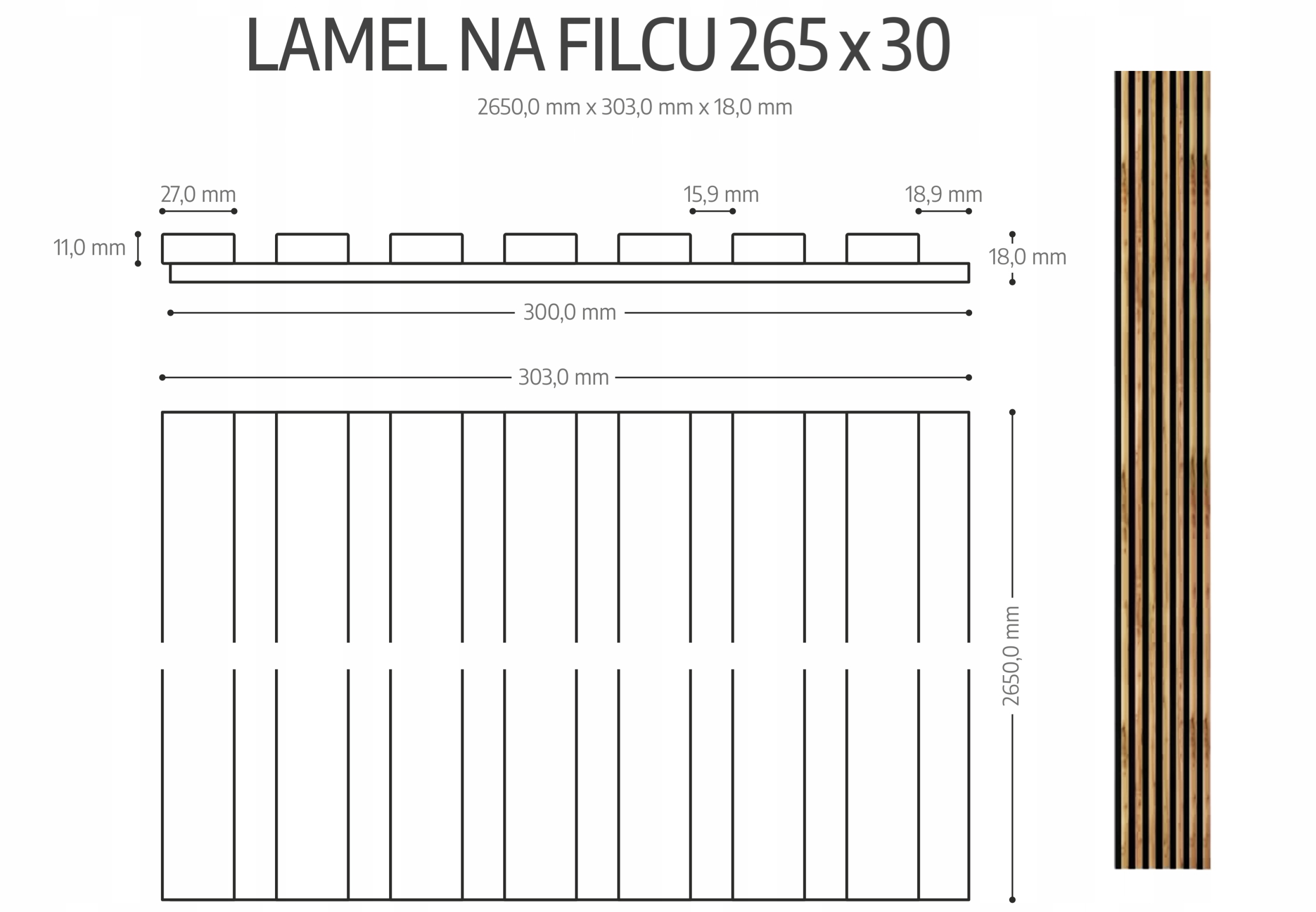 Lamele na filcu 265×30 Ścienne Panele Akustyczne Dąb Naturalny Wotan 7L