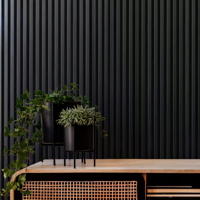 Oferujemy nowoczesne lamele ścienne na podkładzie filcowym w eleganckim czarnym matowym kolorze, które zmienią charakter każdego wnętrza. Dzięki unikalnemu połączeniu pionowych profili i miękkiego filcu, nasze panele nie tylko dodają estetyki, ale również poprawiają akustykę pomieszczenia. Wykonane z wysokiej gęstości płyty MDF, lamele są lekkie, łatwe w montażu i nie wymagają dodatkowych narzędzi – wystarczy je przykleić na przygotowaną powierzchnię.