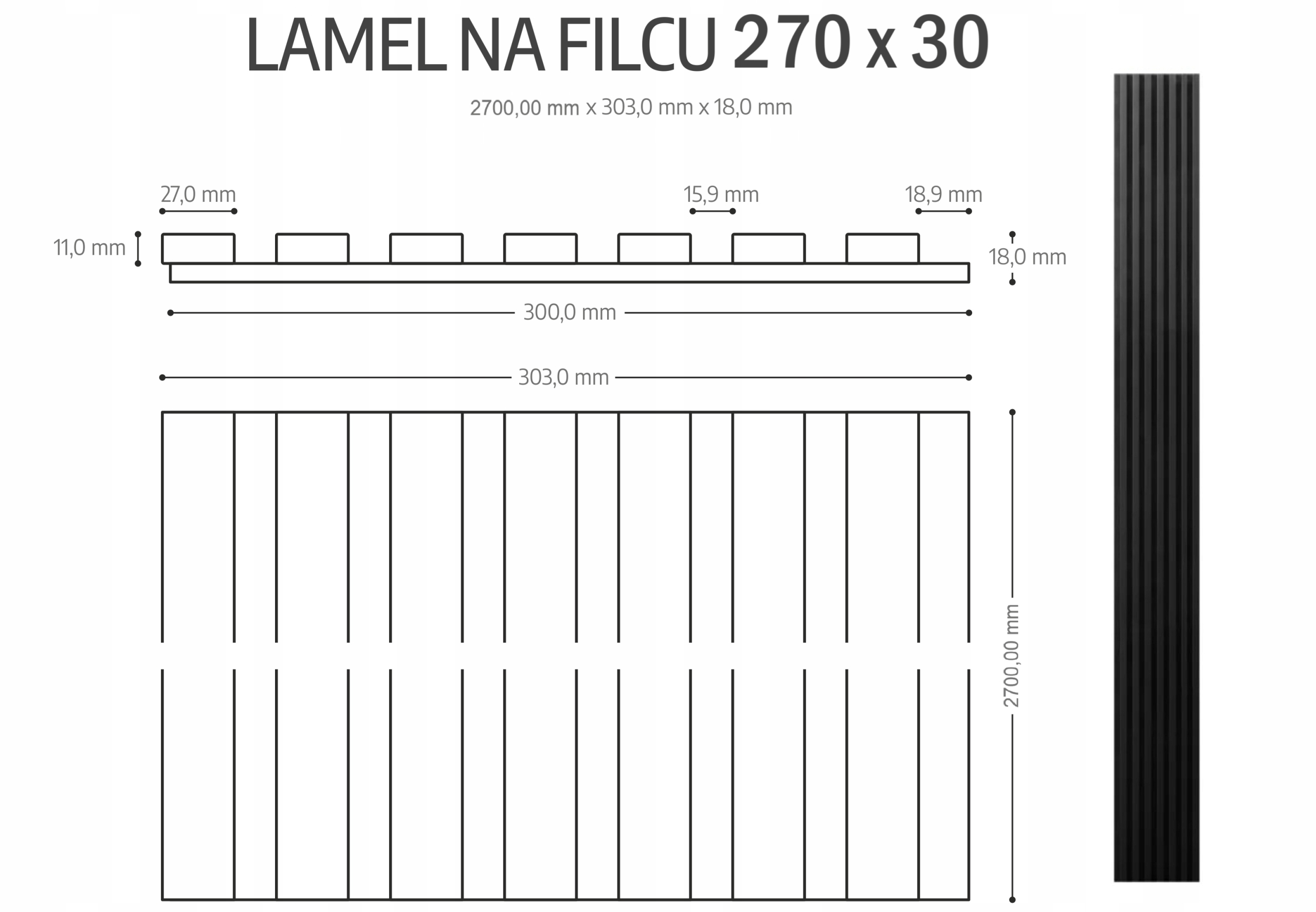 Lamele na filcu 270×30 Ścienne Panele Akustyczne Czarne Matowe Czerń 7L