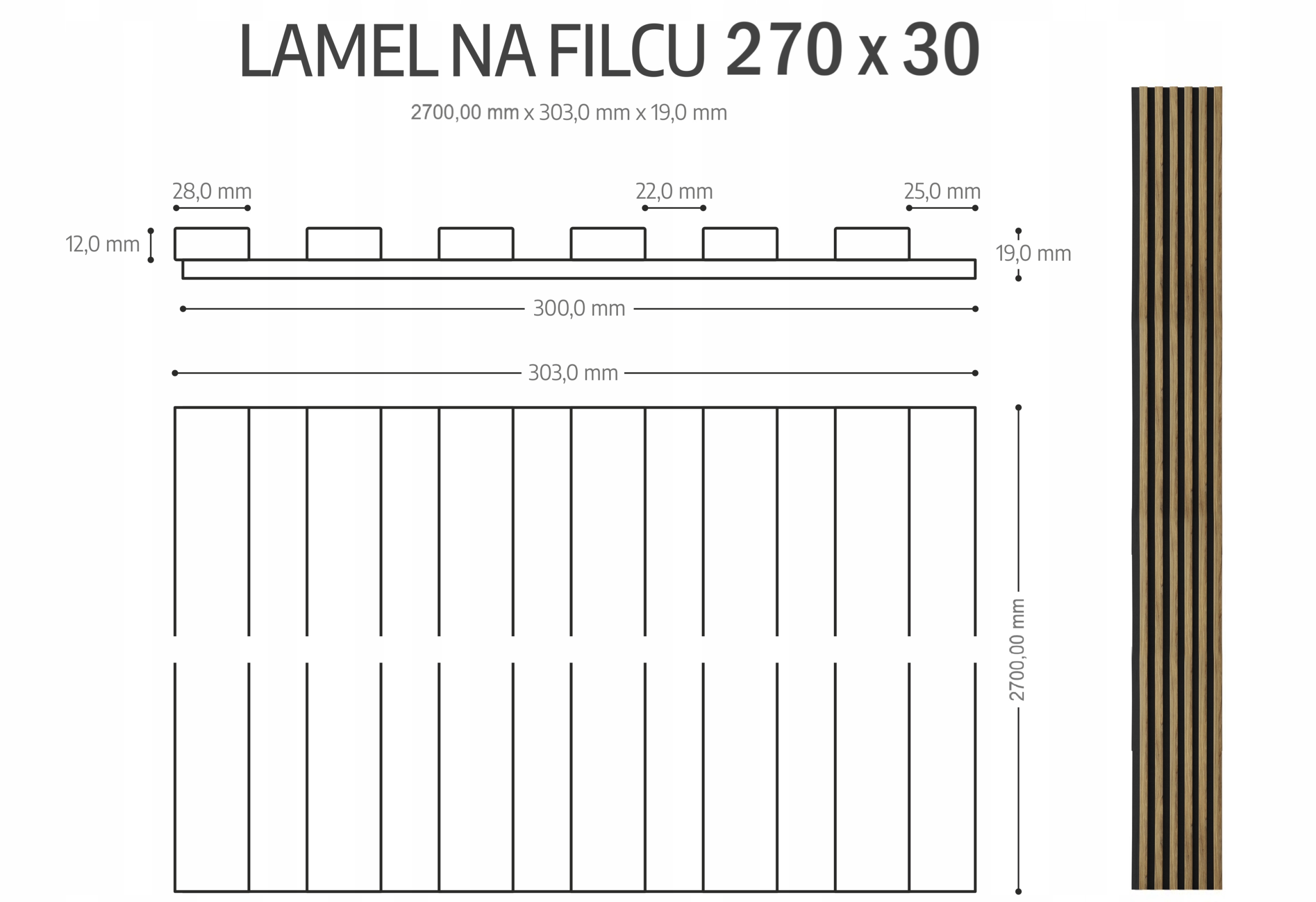 Lamele na filcu 270×30 Ścienne Panele Akustyczne Dąb Naturalny Catania 6L