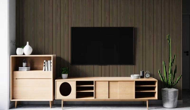 Panele mogą być stosowane w różnych kontekstach: za telewizorem, przy stole jadalnianym, w strefie wypoczynkowej czy jako nowoczesne ścianki działowe. Ich minimalistyczny design doskonale wpasowuje się w trendy skandynawskie oraz loftowe, a naturalny wygląd drewna wprowadza do przestrzeni przytulność i ciepło.