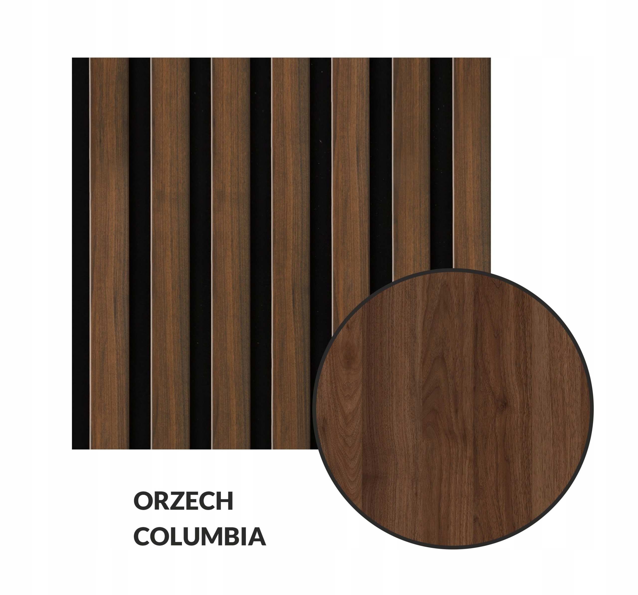Wykonane z wysokiej jakości płyty MDF o gęstości, lamele te doskonale wpisują się w trendy aranżacyjne, dodając wnętrzom subtelnej elegancji. Pionowe profile w odcieniu Orzech Columbia w połączeniu z czarnym podkładem filcowym tworzą efekt 3D, co sprawia, że przestrzeń nabiera optycznej głębi.